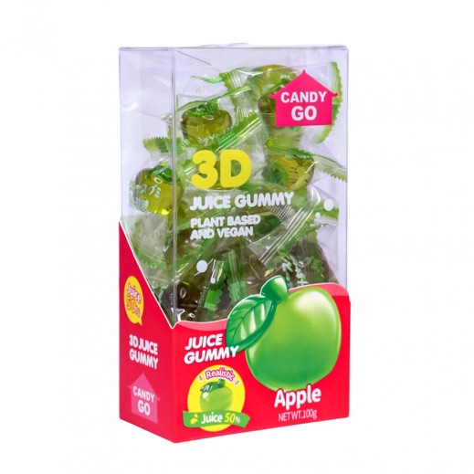 Candy Go Plant-Based 3D Juice Gummy Apple (100g) are soft, chewy, and tender treats shaped like real apples. Made with fruit juice and plant-based ingredients (often pectin or agar-agar), they provide a vibrant green apple flavor and a 3D visual experience. They are generally designed as vegan-friendly or gelatin-free snacks.