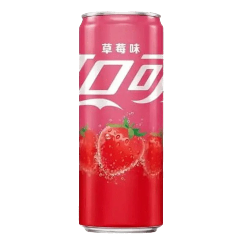 Coca-Cola Strawberry (330ml) is a refreshing, imported soda variant—primarily from China—that blends the classic caramel taste of Coca-Cola with a sweet, aromatic twist of strawberry. Featuring a pink-red accented label, this bubbly beverage offers a fruity, candy-like flavor profile that is best enjoyed chilled.