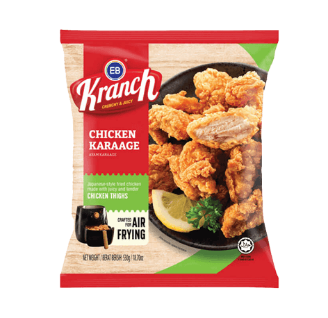 EB Food Kranch Chicken Karaage (530g) is a frozen, Japanese-style fried chicken made from marinated tender chicken thighs. It features a, crunchy exterior and a juicy interior, designed for quick, convenient, and healthier cooking, especially in an air fryer (200°C for 12 minutes). Ideal for snacks or meals.