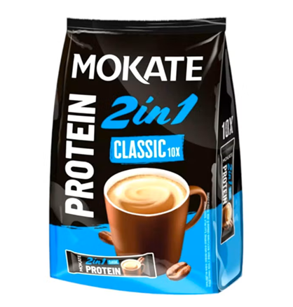 Mokate 2in1 Protein Classic 80g (10x8g sachets) is an instant coffee mix combining roasted coffee with creamer and added protein, designed for an on-the-go energy boost. It offers a creamy, classic taste without excess bitterness, typically featuring a blend of instant coffee and finely ground roasted coffee.