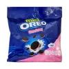 Oreo Mini Strawberry Sandwich Cookies (20.4g) are bite-sized chocolate biscuits filled with sweet strawberry-flavored cream, offering a crunchy, fruity twist on the classic Oreo. These 20.4g bags are small, single-serving packs ideal for snacking on the go, often found in multipacks.